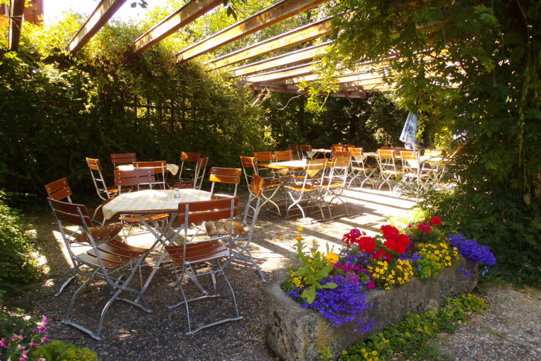 In unserem Biergarten finden Sie während der heißen Jahreszeit immer ein schattiges Plätzchen bei einem frisch gezapften Bier.